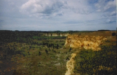 dziura w ziemi (ok.7 ha). Głębokość ok. 15 metrów -